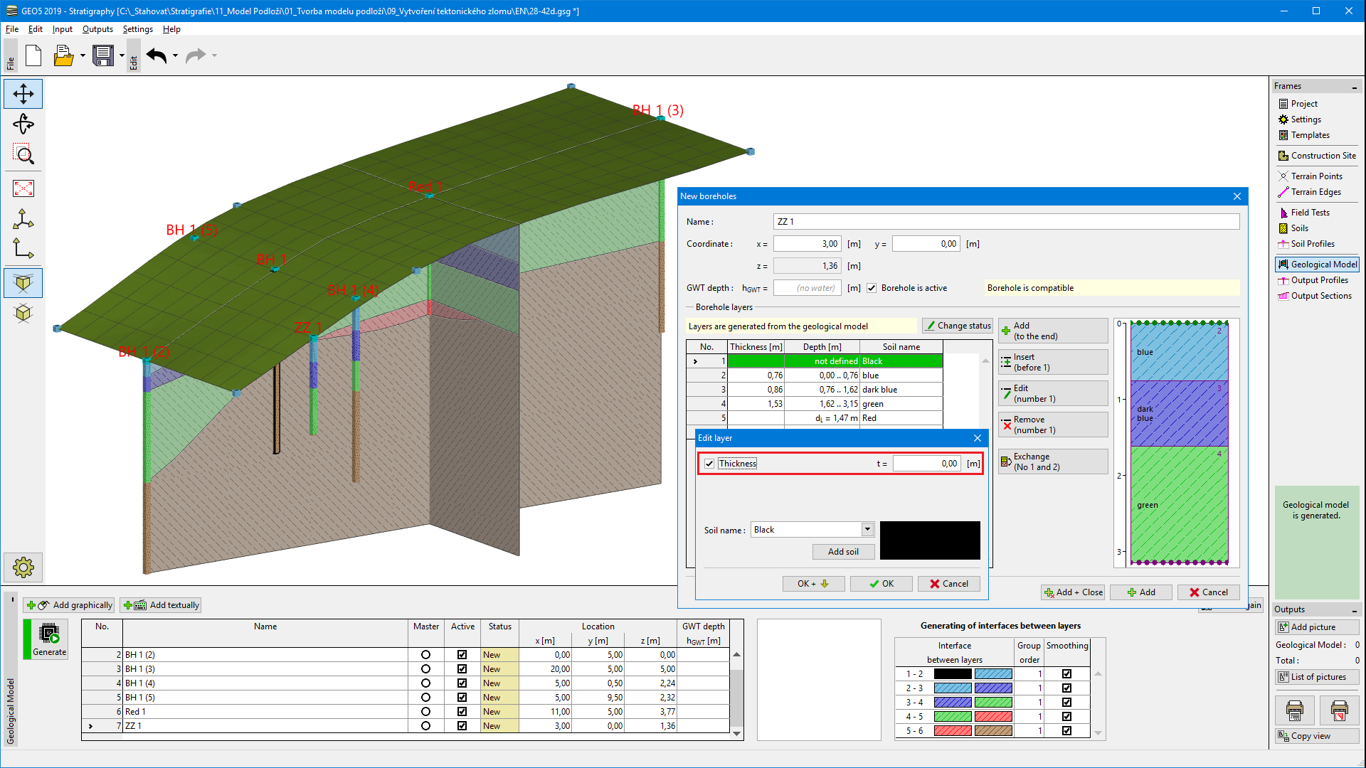 Nous répétons le processus pour les sondages ZZ 2 et ZZ 3 (l'épaisseur de la couche noire prenant toujours pour valeur [0 m]).